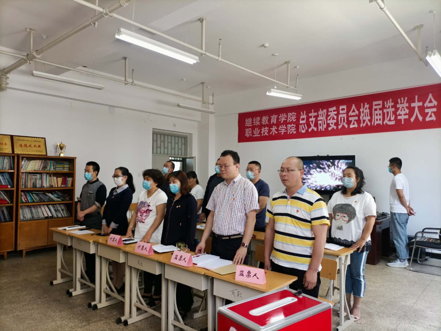 5月29日上午,继续教育学院职业技术学院党总支在党员活动室召开总支委员会换届选举大会。校党委委员、组织部部长郭继林出席,会议由党总支书记吉广庆主持,院领导及全体党员参加。