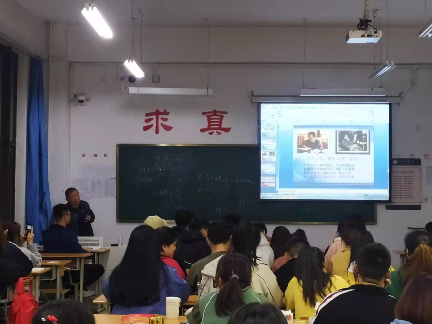 11月17日,职业技术学院党总支书记吉广庆主讲了《中国共产党党史》。吉广庆从“中国共产党的创立”到“实现历史的伟大转折”对党史进行深刻讲解,围绕党的根本宗旨:“全心全意为人民服务”对同学们进行了一次思想政治大洗礼,教育大家要“不忘初心、牢记使命”,用习近平新时代中国特色社会主义思想武装头脑,树立远大理想,为建成富强民主文明和谐美丽的社会主义现代化强国而努力奋斗。
