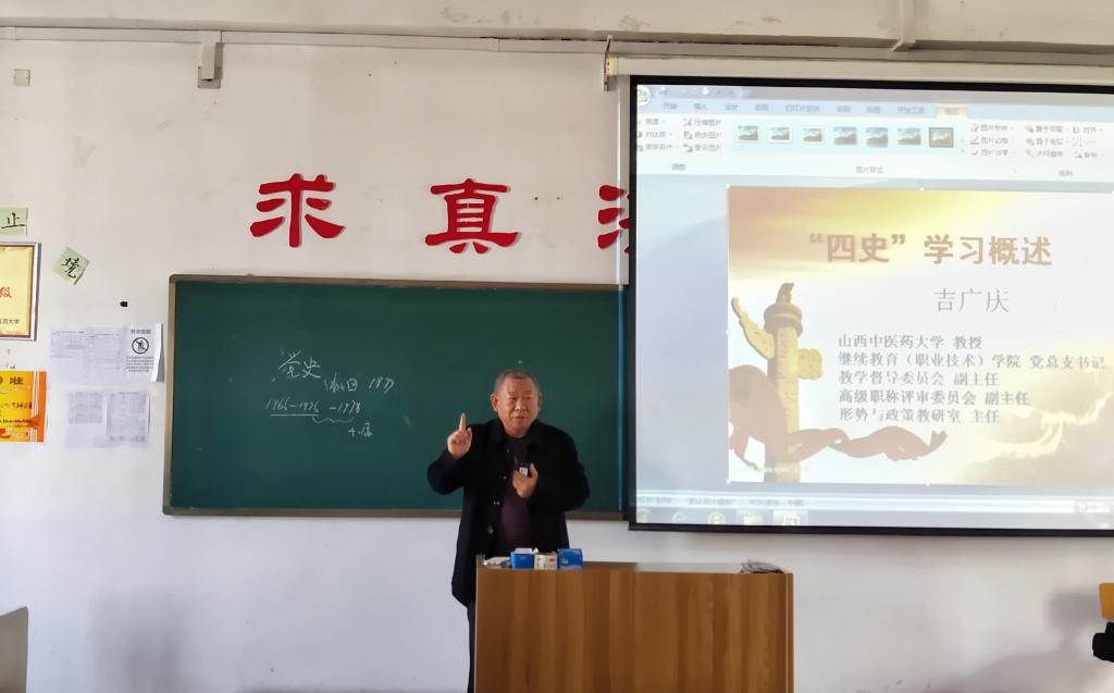 3月11日下午,职业技术学院在仁济书院甲座108教室开展“开学第一课”——党史学习教育,党总支书记吉广庆教授主讲,全体党员及入党积极分子参加,因疫情不在校的学生党员通过视频直播的形式参加。
