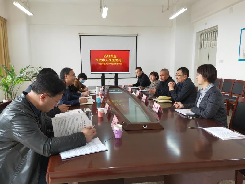 3月16日上午,长治市人民医院党委书记李俊一行前来我院洽谈继续教育合作事宜,继续教育学院院长张志强、党总支书记吉广庆及相人员参加洽谈会。