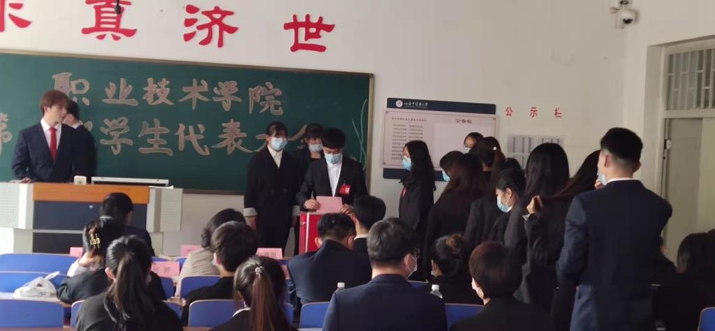 11月1日,职业技术学院在仁济甲座113教室召开第一次学生代表大会。我院全体辅导员、校学生会主席王昊雨出席此次代表大会,大会共有50名学生代表参加。