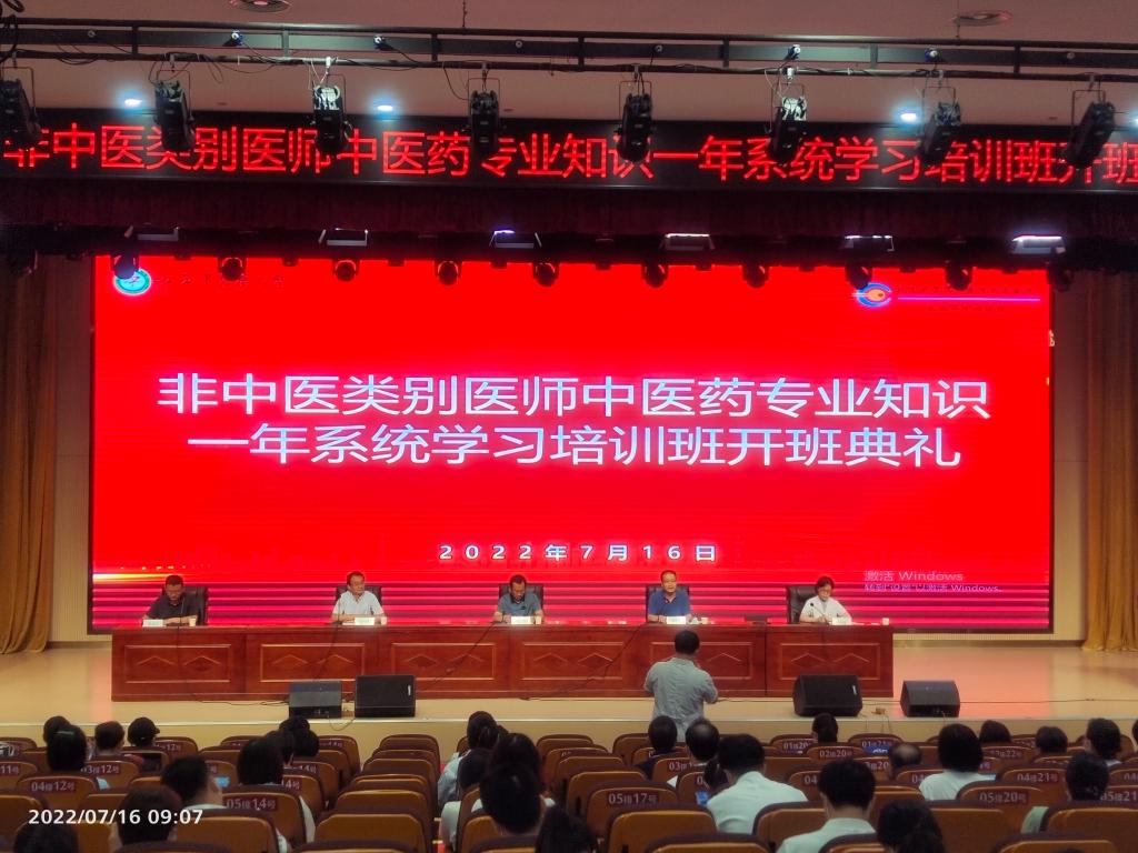 7月16日上午,山西中医药大学继续教育学院在北京大学第一医院太原医院(太原市中心医院)汾东院区千人大礼堂举行了“非中医类别医师中医药专业知识一年系统学习培训班”开班典礼。我校继续教育学院党总支书记张志强、副院长程生辉、培训负责人陈海荣,北京大学第一医院太原医院(太原市中心医院)院长李新华、副院长杨晓丽出席,240名学员参加开班典礼。