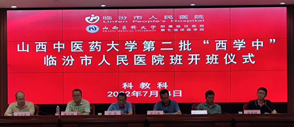7月24日上午,山西中医药大学继续教育学院在临汾市人民医院举行“非中医类别医师中医药专业知识一年系统学习培训班”开班仪式。学校继续教育学院党总支书记张志强、办公室主任吴晋、社会教育部主任陈富丽、西学中临汾地区负责人牛文荣,临汾市人民医院办公室主任赵波、科教科主任贾易周出席,全体“西学中”培训学员参加。