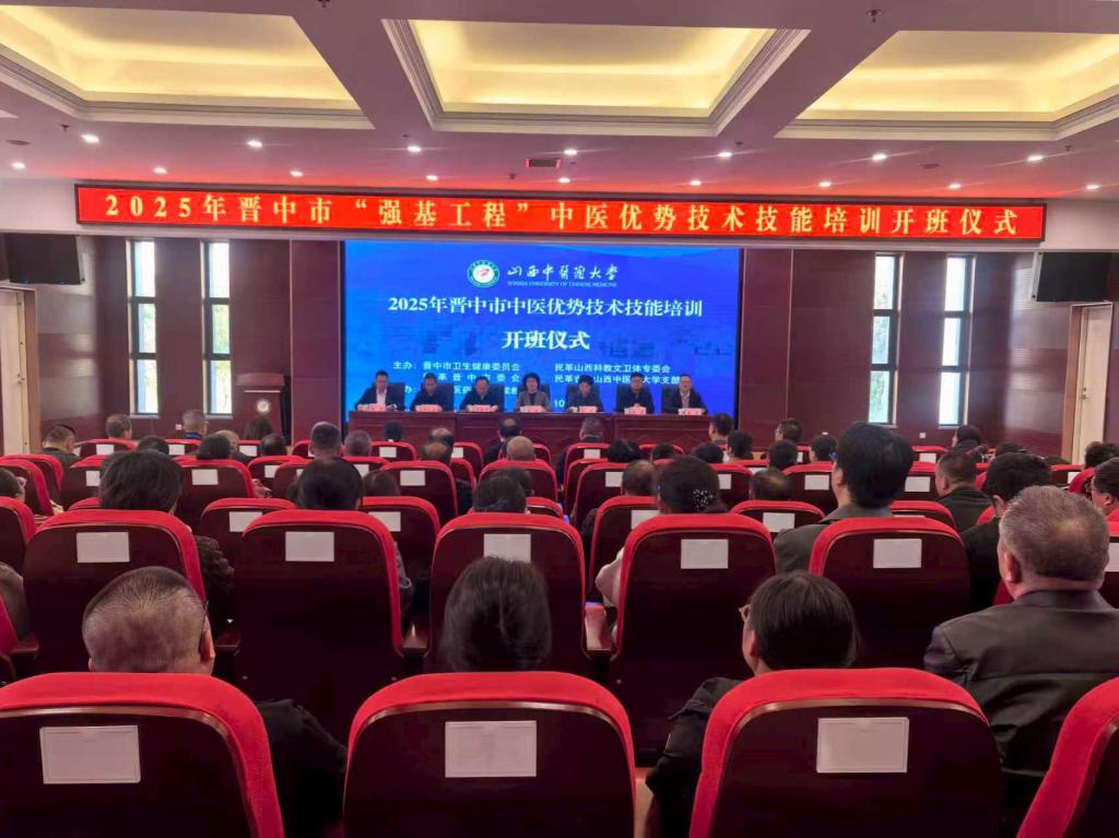 10月14日,晋中市“强基工程”中医优势技术技能第三期培训班开班仪式在我校图文信息中心回春堂举行。全国人大代表、民革山西省委会副主委、晋中市人大副主任辛琰,山西中医药大学副校长郭蕾,晋中市卫健委党组书记、主任冯雨平,省政协委员、民革山西省科教文卫体专委会主任刘洋,民革晋中市委会主委刘文忠,山西中医药大学继续教育学院党总支书记吕洪出席,第三期150名学员参加。仪式由继续教育学院院长赵勇主持。