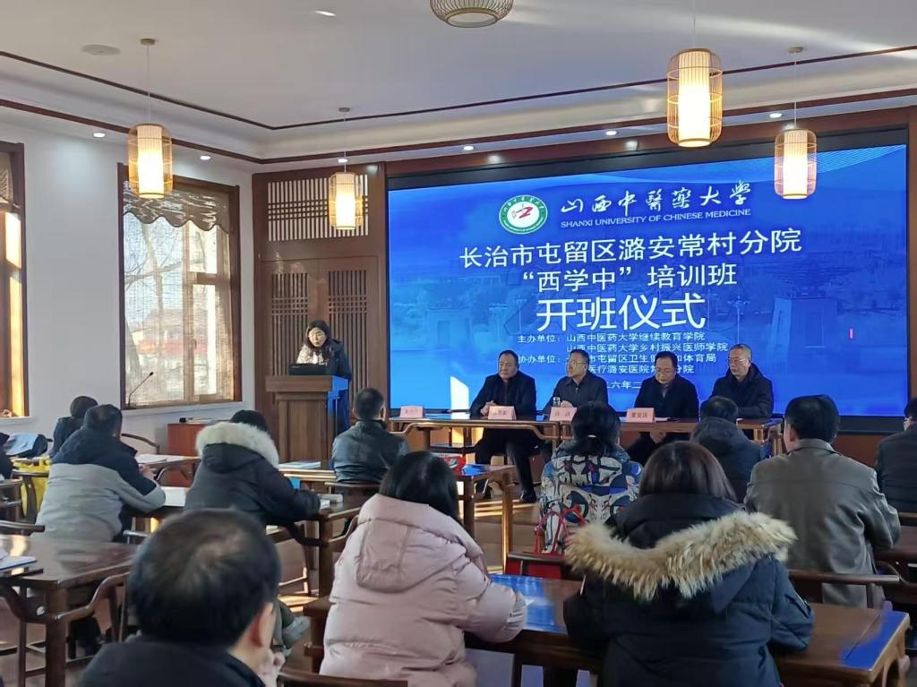 2月7日上午,山西中医药大学2026年“非中医类别医师中医药专业知识系统学习潞安集团常村分院培训班”开班仪式在北大医疗潞安医院常村分院举行。本次“西学中”培训班由山西中医药大学继续教育学院、乡村振兴医师学院主办,屯留区卫生健康和体育局、北大医疗潞安医院常村分院协办。我校继续教育学院党总支书记吕洪,屯留区卫生健康和体育局党组书记、局长董爱国出席,北大医疗潞安医院常村分院院长史小兰主持并致辞,全体“西学中”参训学员参加。